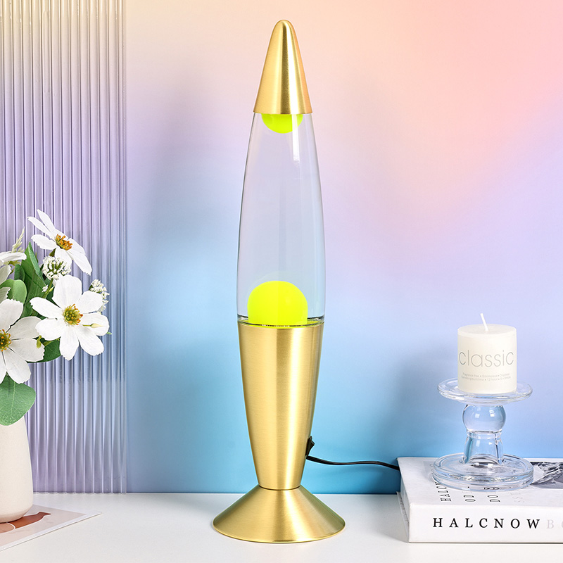 24VĐèn sáp đèn dung nham màu cam sang trọng 16 inch có nước tinh khiết bên trong thủy tinh trong suốt và sáp màu xanh lá cây bên trong. Sau khi được làm nóng, sáp nổi không đều trong nước, điều này được đánh giá cao.