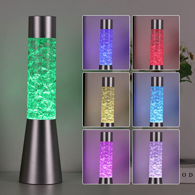 Đèn ngủ dạng lỏng lấp lánh đổi màu có hình dạng giống đá có đèn LED tích hợp có thể chuyển đổi giữa ba màu khác nhau – đỏ, xanh dương và xanh lục. Đơn giản chỉ cần vặn đế đèn để chuyển qua các màu cho đến khi bạn tìm thấy màu sắc mong muốn.