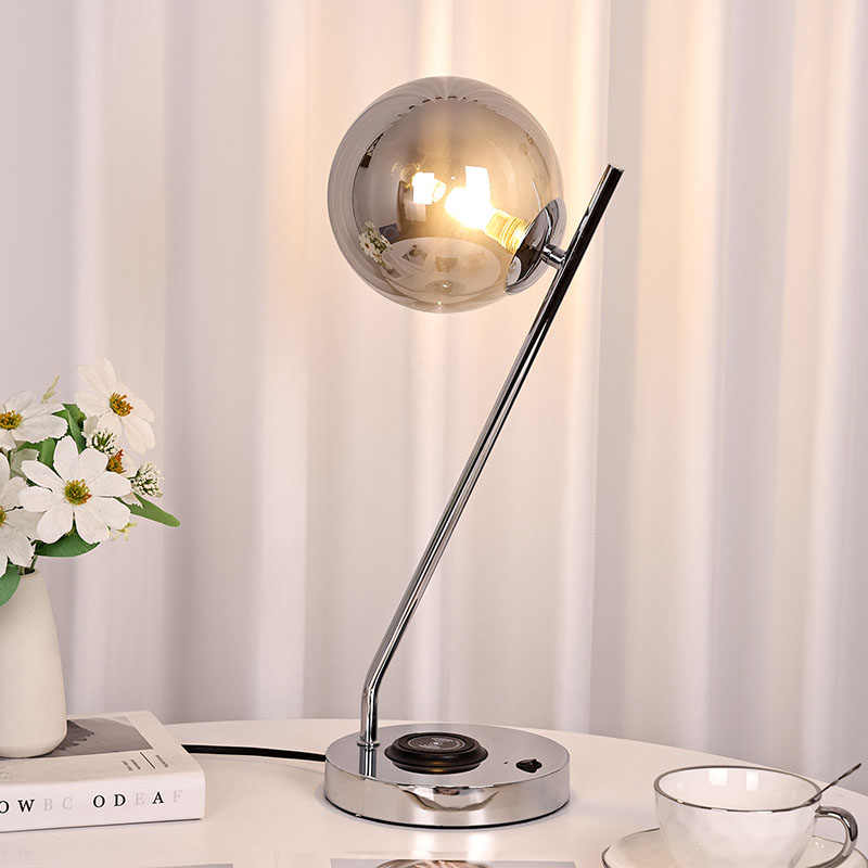Đèn bàn bóng thủy tinh tối màu kèm bộ sạc không dây được làm bằng đế kim loại và kính. Vỏ kính không chỉ mang lại cho đèn kết cấu trong suốt và tinh khiết mà còn khuếch tán ánh sáng hiệu quả, giúp ánh sáng dịu hơn và đồng đều hơn. Đế kim loại đã được đánh bóng và xử lý tinh xảo, với bề mặt mịn màng và tinh tế, tạo cảm giác thoải mái khi chạm vào và toát lên bầu không khí quý phái và trang nhã. Dù được đặt trong phòng ngủ, phòng khách hay phòng làm việc, chiếc đèn bàn này có thể hòa hợp hoàn hảo với môi trường xung quanh, tăng thêm bầu không khí hiện đại và nghệ thuật.
