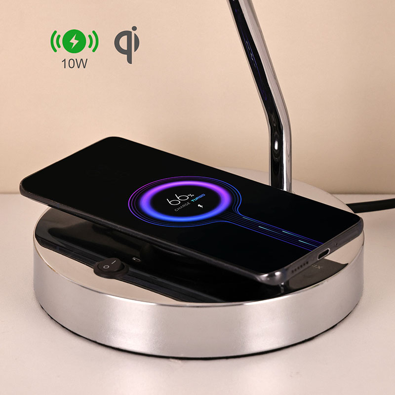 Đèn bàn kèm sạc không dây có nút điều khiển ở chân đế bật/tắt