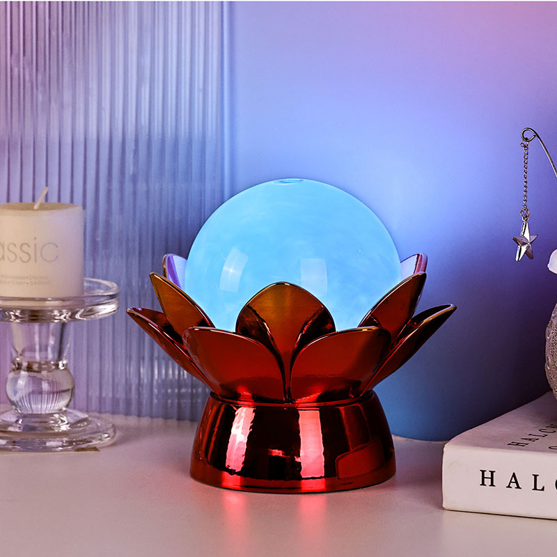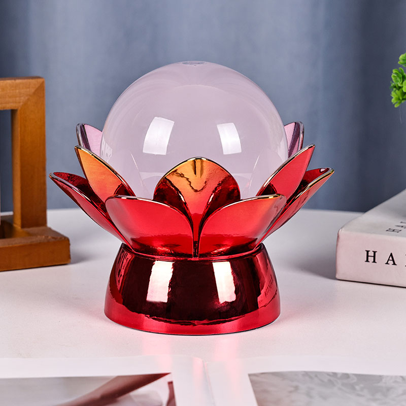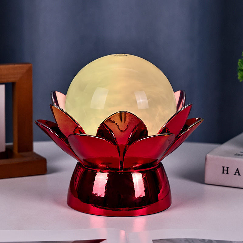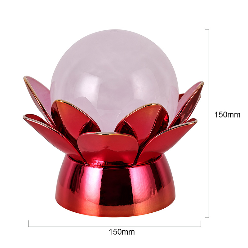 Được chế tác từ vật liệu chất lượng cao, phần đế được làm bằng kim loại đánh bóng với lớp mạ vàng đỏ nổi bật, phản chiếu ánh sáng đẹp mắt, tăng thêm chiều sâu và sự phong phú cho vẻ ngoài của nó. Thiết kế hoa sen không chỉ đóng vai trò là tâm điểm thẩm mỹ mà còn mang ý nghĩa biểu tượng bắt nguồn từ truyền thống phương Đông—đại diện cho sự giác ngộ, kiên cường và hài hòa. Bề mặt phản chiếu giúp tăng cường tác động trực quan, giúp đèn tỏa sáng ngay cả trong môi trường ánh sáng yếu.