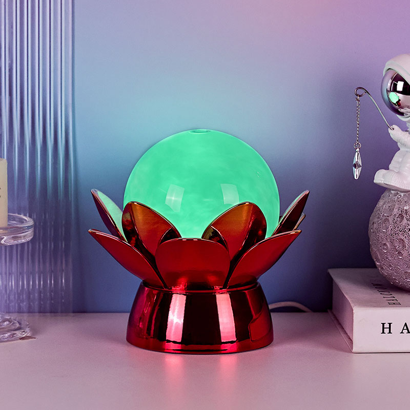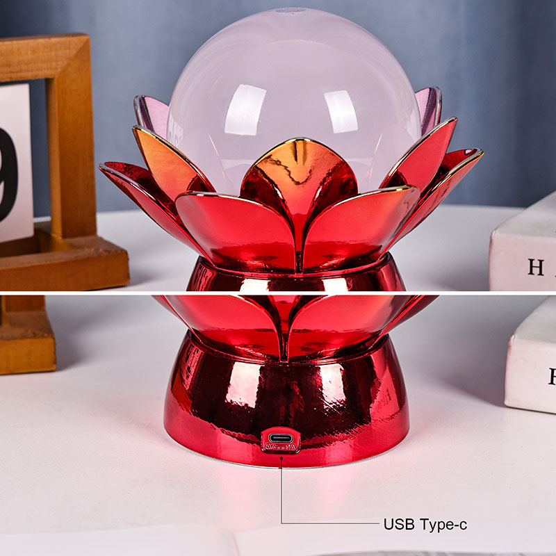Đèn ngủ quả cầu mây hoa sen đầy mê hoặc - sự kết hợp đầy mê hoặc giữa thiết kế lấy cảm hứng từ thiên nhiên, bầu không khí êm dịu và công nghệ hiện đại. Chiếc đèn trang trí trang nhã này có một quả cầu thủy tinh mờ chứa đầy chất lỏng đặc biệt mô phỏng những đám mây trôi, tạo ra hiệu ứng yên tĩnh, thanh tao khi nó xoáy và chảy nhẹ nhàng. Lấy cảm hứng từ bông hoa sen thiêng liêng, chiếc đèn ngủ này đặt trên đế kim loại được chế tác đẹp mắt có hình dạng như những cánh hoa sen đang nở, tượng trưng cho sự tinh khiết, hòa bình và sự thức tỉnh tâm linh.