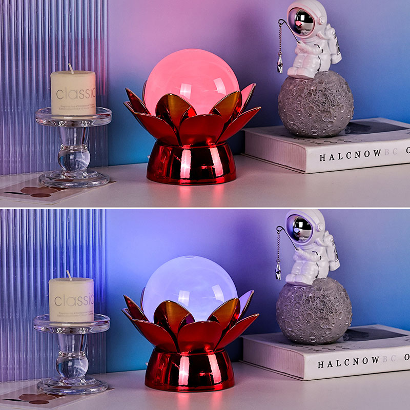 Bên trong quả cầu, hệ thống chiếu sáng LED tiên tiến cung cấp khả năng chiếu sáng nhiều màu, cho phép người dùng tùy chỉnh tâm trạng bằng các màu sắc dịu nhẹ như trắng ấm, hồng dịu, xanh dịu và vàng vàng. Tính năng thay đổi màu sắc có thể được điều khiển thủ công hoặc được đặt thành chu kỳ tự động, mang lại màn hình động và quyến rũ thay đổi theo thời gian. Ánh sáng xung quanh này lý tưởng cho phòng ngủ, phòng khách, không gian tập yoga hoặc làm quà tặng chu đáo cho những người thân yêu, những người đánh giá cao vẻ đẹp và sự yên tĩnh.