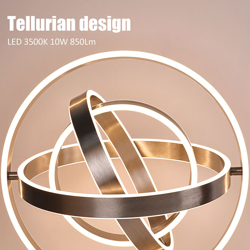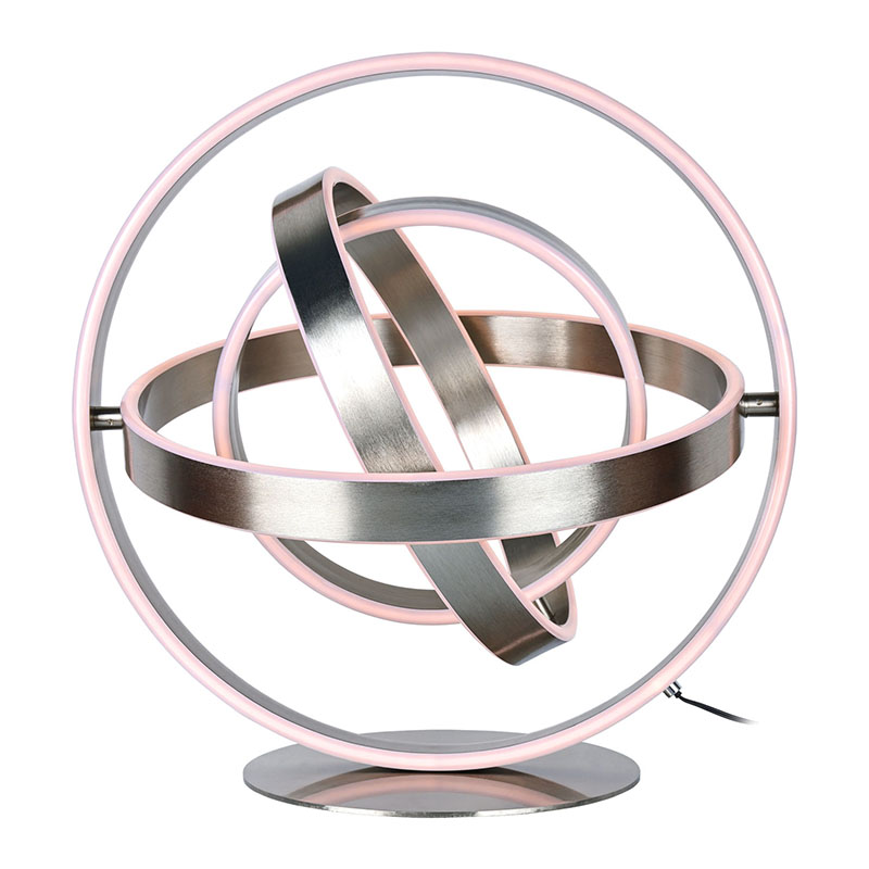 cácđèn bàn led tinh tếbao gồm nhiều đèn LED hình khuyên, với đèn LED được cắt vào từng ngoại vi hình khuyên. Thiết kế hình khuyên có thể xoay thành hình cầu
