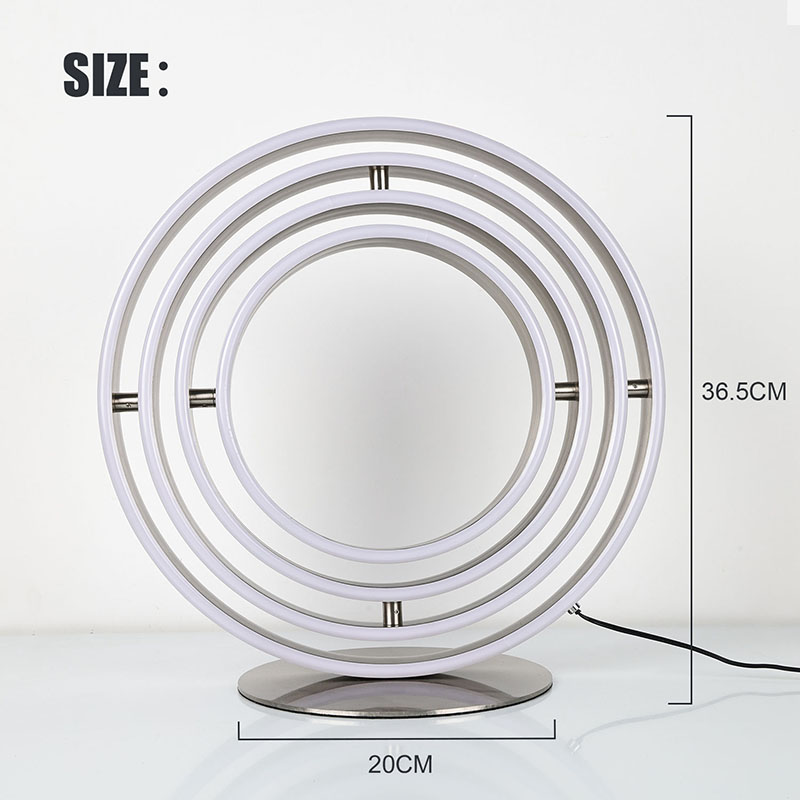 Được làm từ vật liệu hợp kim chất lượng cao, Đèn bàn trang trí LED nhiều vòng được chế tạo để tồn tại lâu dài. Đế chắc chắn đảm bảo sự ổn định, cho phép bạn đặt nó trên bất kỳ bề mặt nào mà không cần lo lắng. Cấu trúc bền có nghĩa là chiếc đèn này có thể chịu được việc sử dụng hàng ngày, khiến nó trở thành một sự bổ sung đáng tin cậy và lâu dài cho trang trí của bạn.