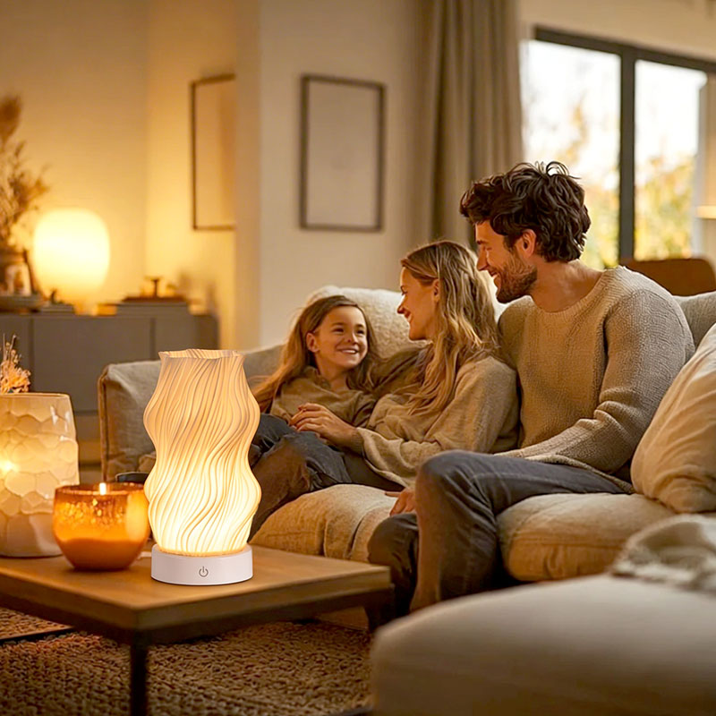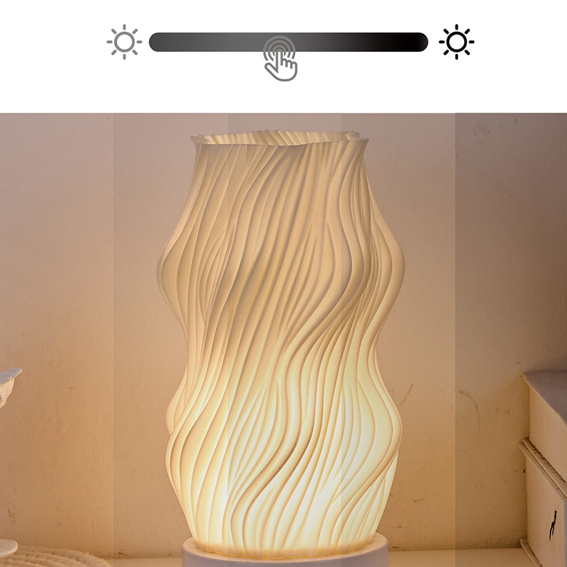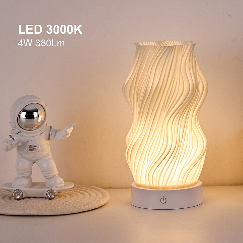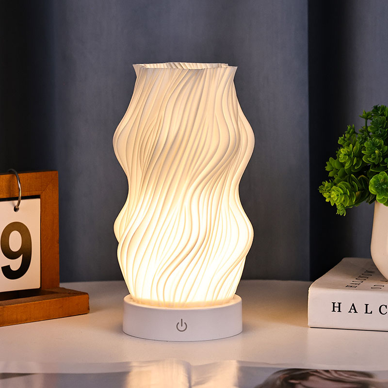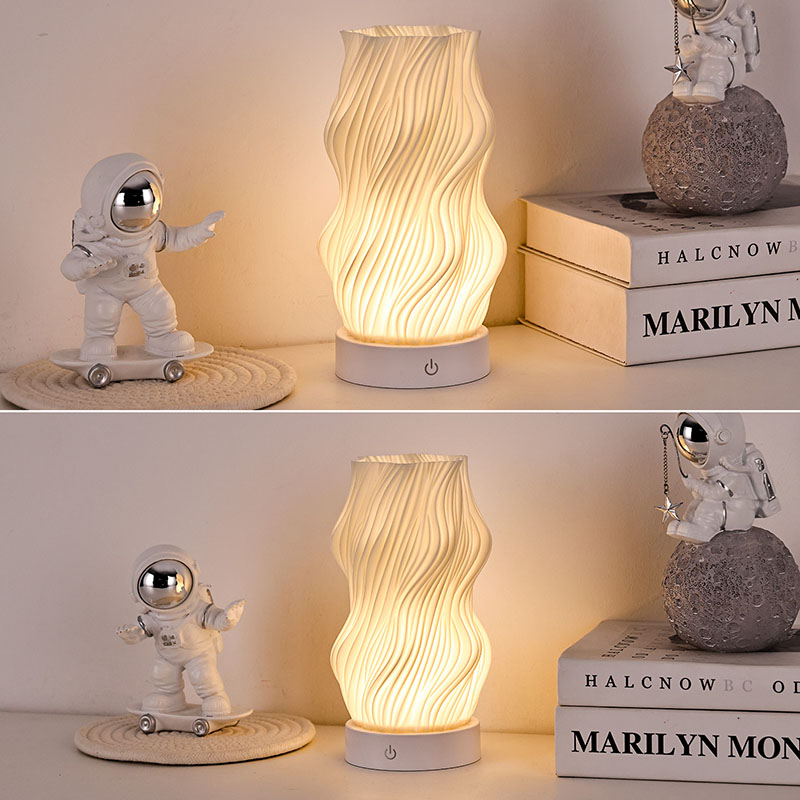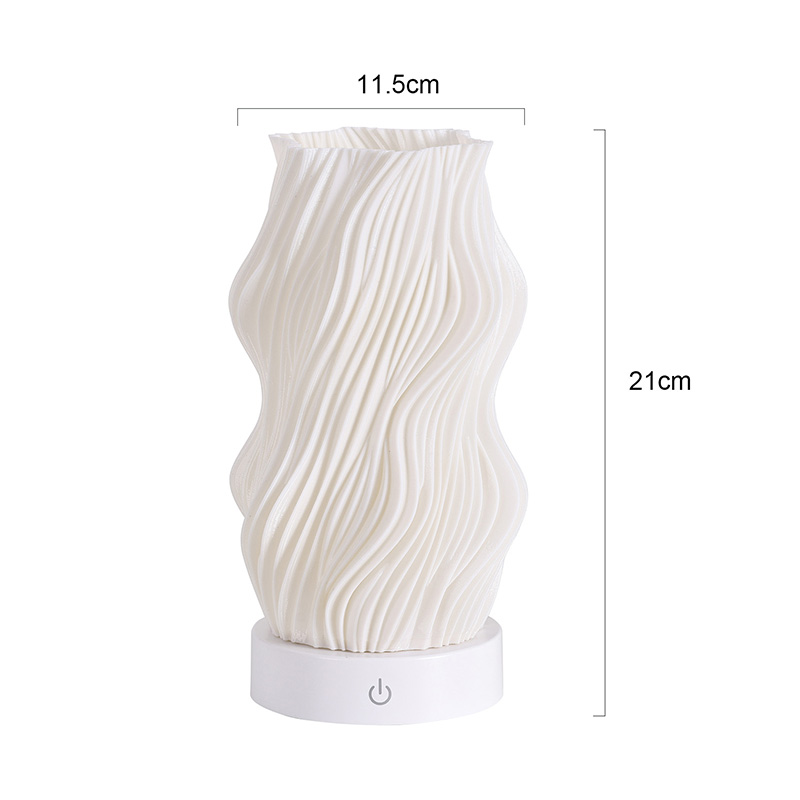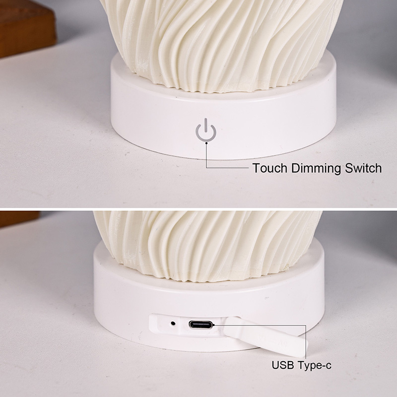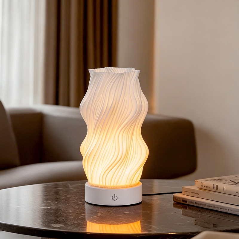 Được chế tạo từ nhựa cao cấp, thân đèn bàn hình ngọn lửa (nhỏ gọn) và nhẹ. Nó không chỉ tạo cảm giác ấm áp khi chạm vào mà còn dễ dàng vệ sinh và di chuyển. Thiết kế kết cấu lượn sóng tối giản kết hợp vẻ đẹp nghệ thuật với tính thực tế, dễ dàng hòa hợp với mọi phong cách trang trí nhà cửa. Đó là một điểm nhấn hoàn hảo, tiết kiệm không gian, tăng thêm nét sang trọng cho căn phòng của bạn.