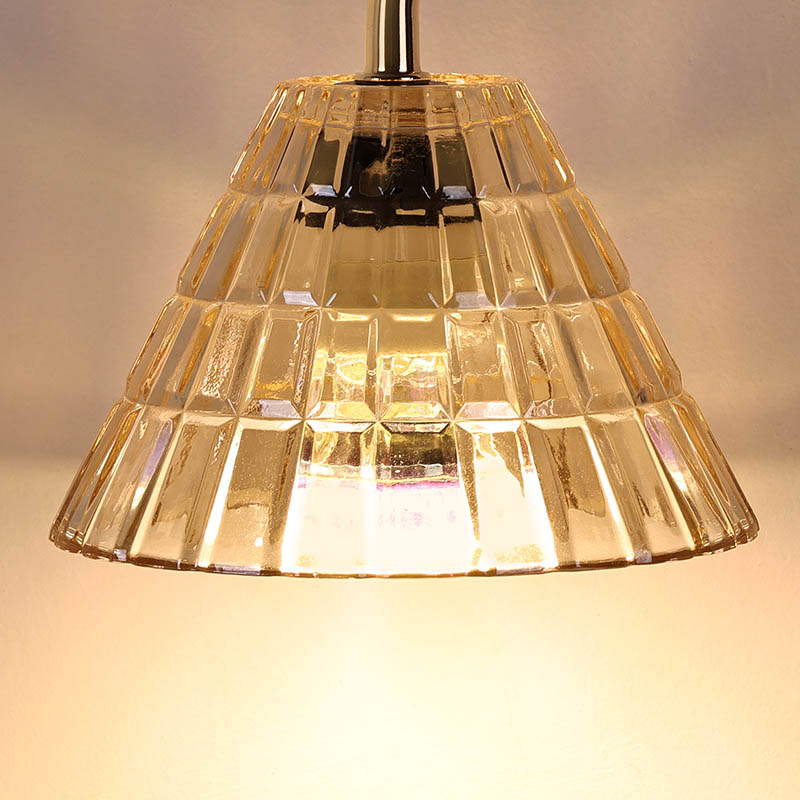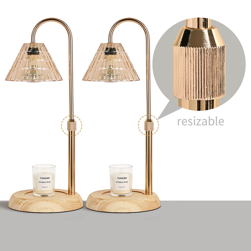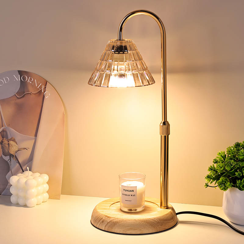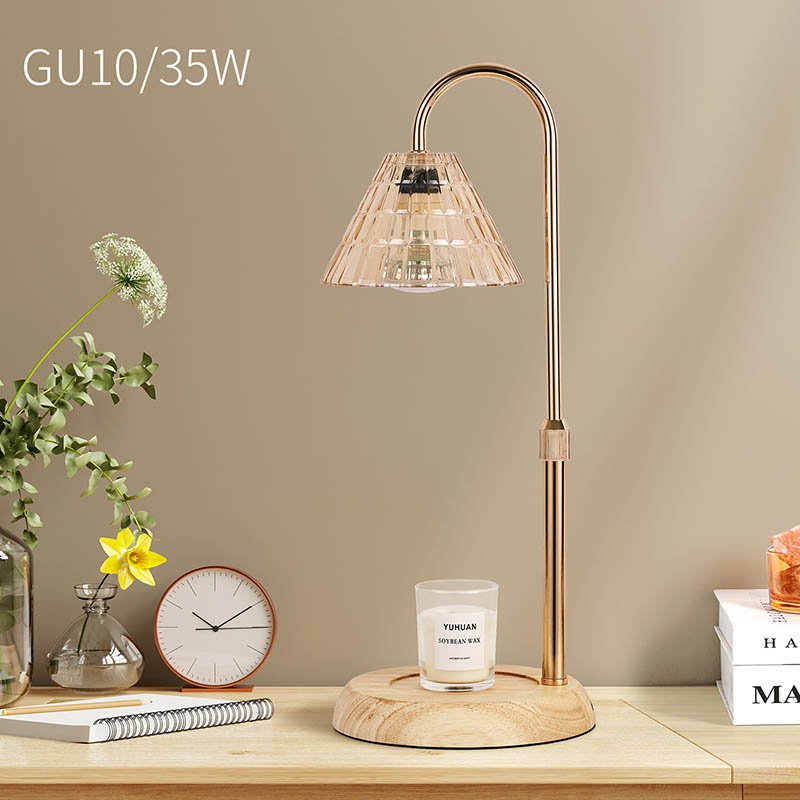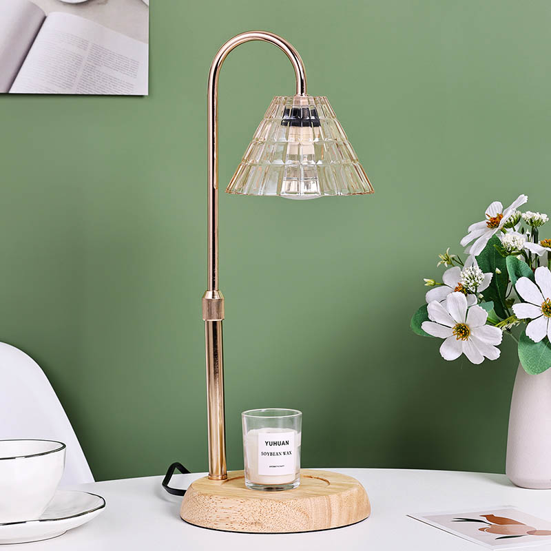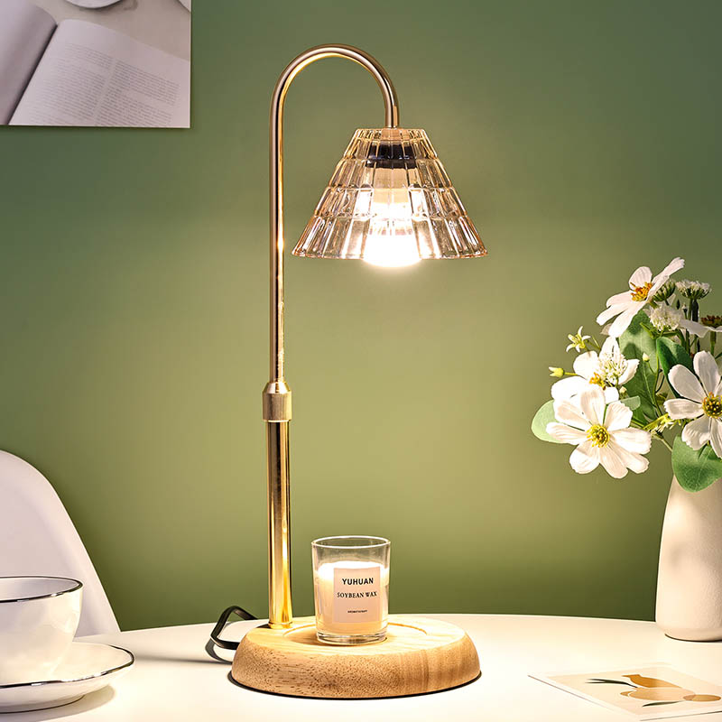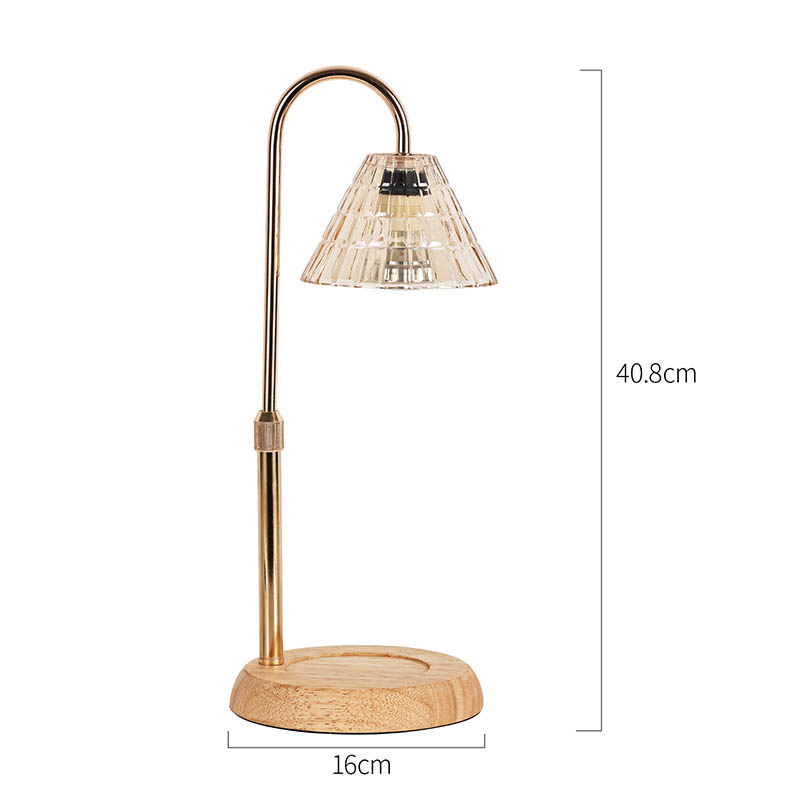 Đèn bàn bóng thủy tinh có điều chỉnh độ cao là phong cách thiết kế truyền thống, bao gồm một bóng đèn truyền thống có đế bằng gỗ và cột đèn bằng kim loại vàng.