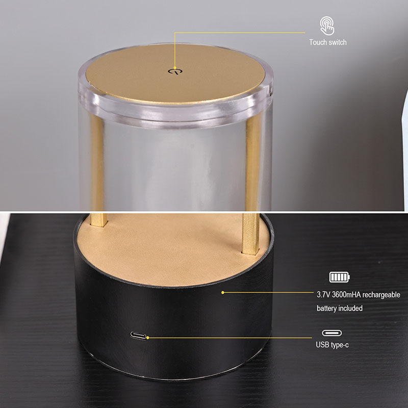 Mặt trên của Đèn bàn nhỏ kiểu Lantern là công tắc đèn cảm ứng, phía dưới có đầu sạc sạc type-c. Mặt trên bao gồm một lớp vỏ acrylic trong suốt và mặt dưới là đế kim loại. Cấu trúc hình tròn tổng thể cho phép chiếu sáng di động