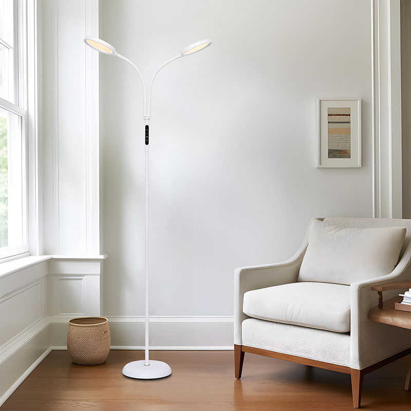 Trong vương quốc của thiết kế nội thất, ánh sáng không chỉ là một yếu tố chức năng mà là một biểu hiện nghệ thuật biến đổi không gian thành những thiên đường của sự thoải mái và phong cách. Hôm nay, chúng tôi giới thiệu cho bạn một giải pháp chiếu sáng mang tính cách mạng nâng cao không gian nhà của bạn lên một tầm cao mới: đèn sàn LED có thể điều chỉnh 2 đầu 360 ° với CCT (nhiệt độ màu tương quan) và điều khiển độ sáng. Đèn sàn LED với nhân đôi được thiết kế để phục vụ mọi nhu cầu ánh sáng của bạn, pha trộn công nghệ tiên tiến với thẩm mỹ bóng bẩy để tạo ra một sự bổ sung đa năng và thanh lịch cho bất kỳ phòng nào.