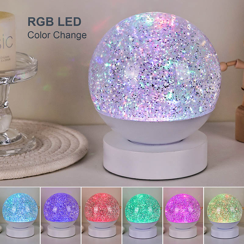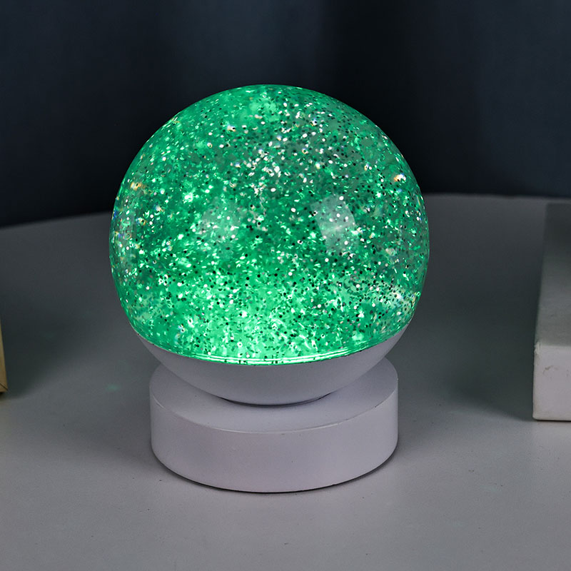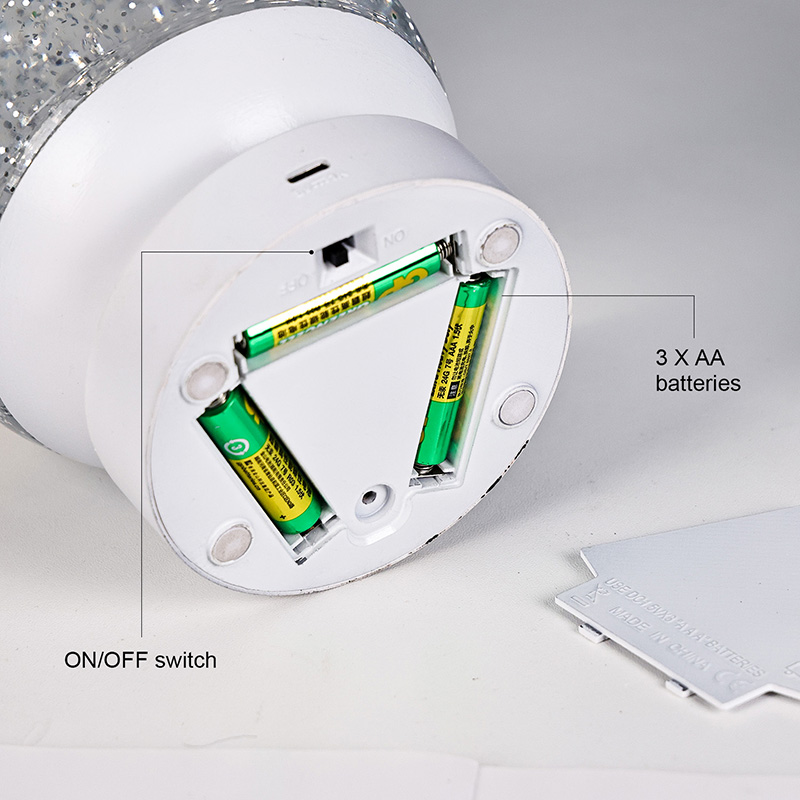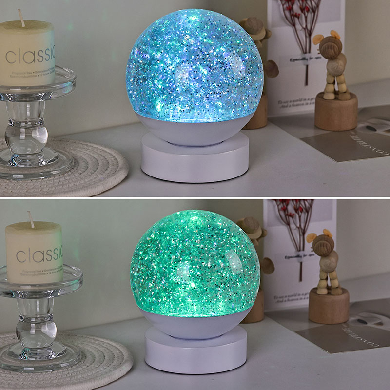 Đèn trang trí Led RGB Glitter được làm từ chất liệu acrylic cao cấp, nổi bật với hình cầu trong suốt có khả năng truyền ánh sáng tuyệt vời. Chân đế được chế tạo từ nhựa ABS thân thiện với môi trường, đảm bảo độ ổn định, bền bỉ và an toàn không chứa chất độc hại. Nó hoạt động bằng ba pin AAA tích hợp (pin được bán riêng), loại bỏ nhu cầu về ổ cắm điện và mang lại sự sử dụng thuận tiện. Hoàn hảo để đặt cạnh giường, bàn hoặc trong góc đồ chơi của trẻ. Với một công tắc cảm ứng đơn giản, đèn có thể dễ dàng bật hoặc tắt, thân thiện với người dùng ngay cả khi trẻ hoạt động độc lập.