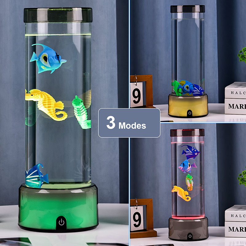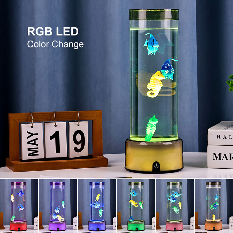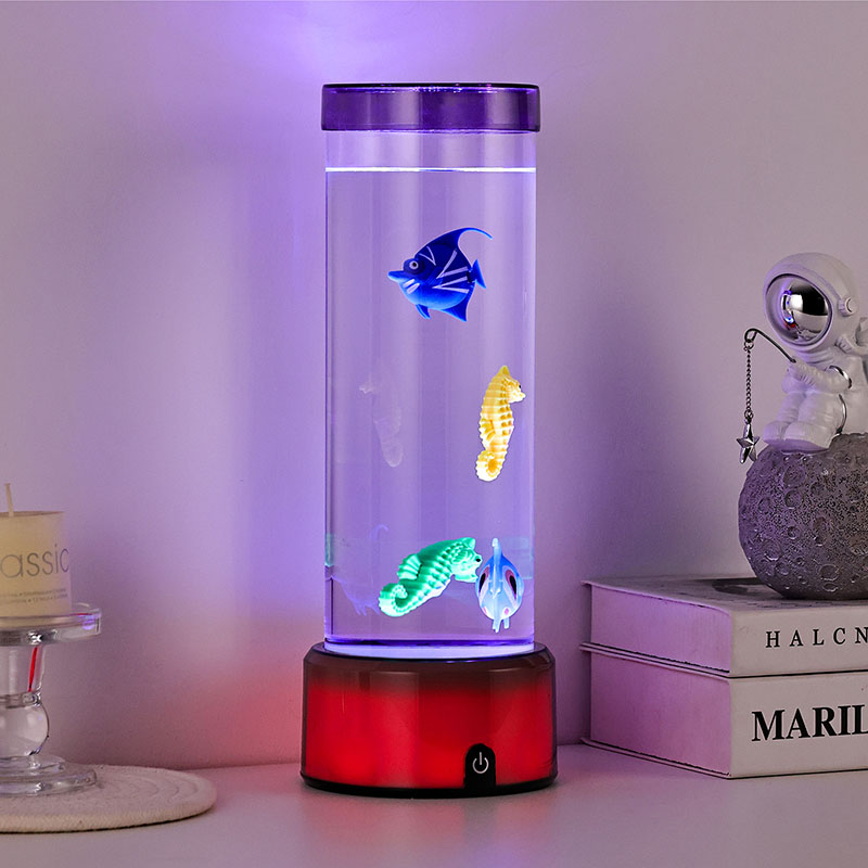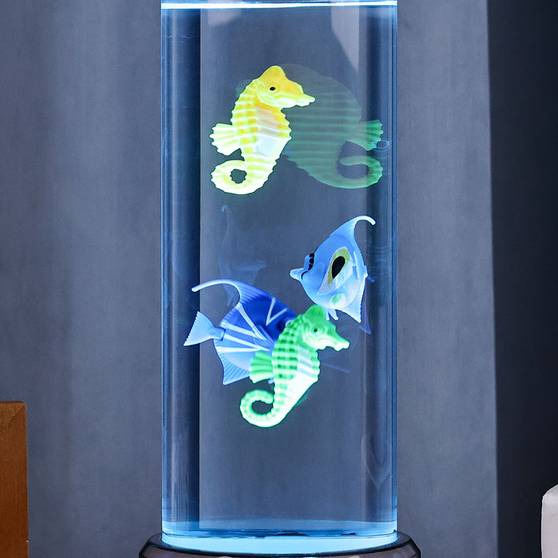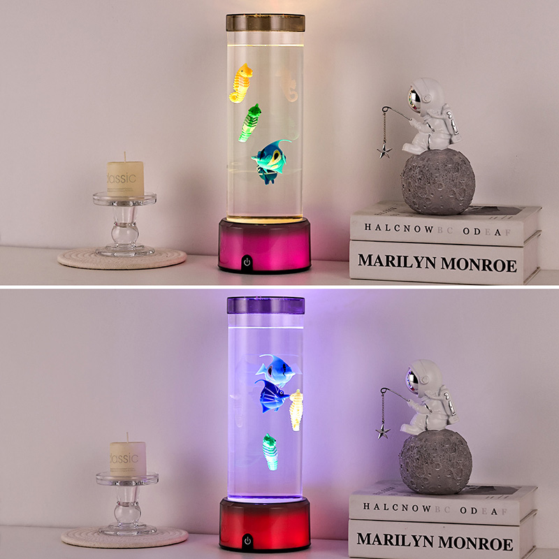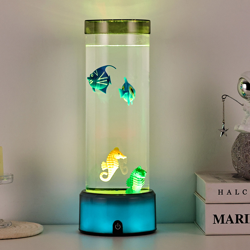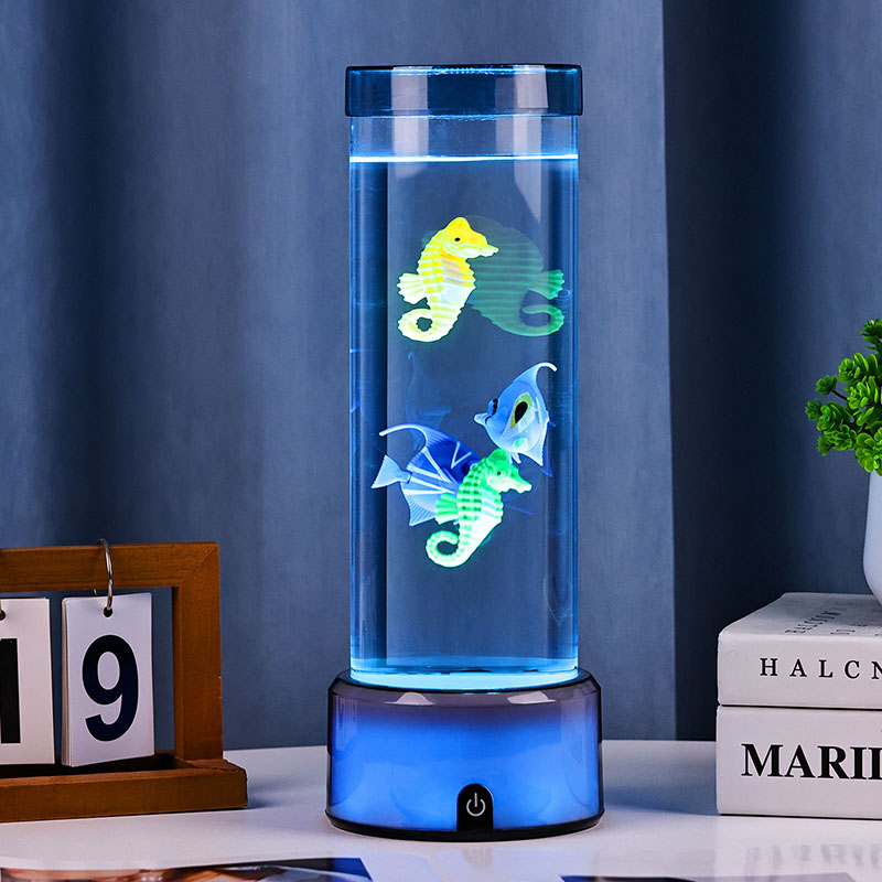 quyến rũ. Được chế tạo từ nhựa chất lượng cao, bền bỉ, chiếc đèn quyến rũ này có thân hình trụ đẹp mắt chứa đầy chất lỏng trong suốt và các hình cá nổi chi tiết đẹp mắt—bao gồm cả những chú cá nhiệt đới sôi động và một chú cá ngựa quyến rũ—tạo nên khung cảnh đại dương thanh bình, sống động như thật, mang đến sự yên bình và thị giác thích thú cho bất kỳ căn phòng nào.
