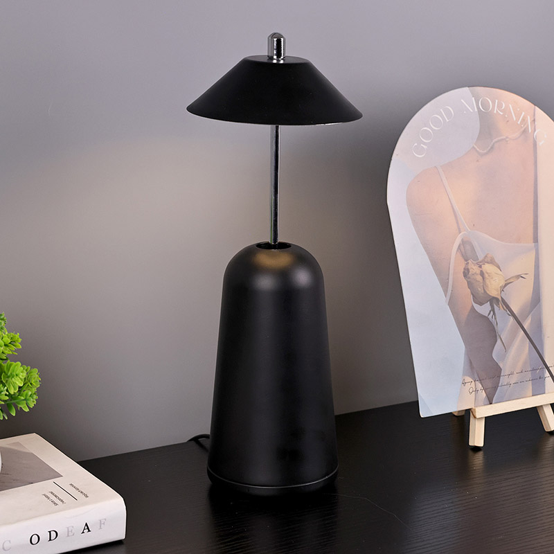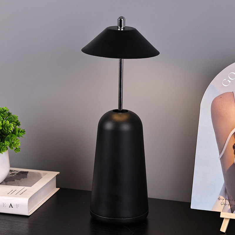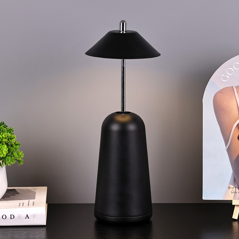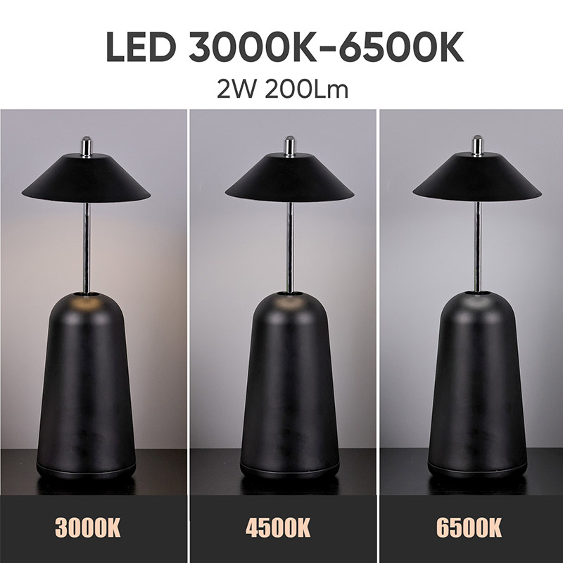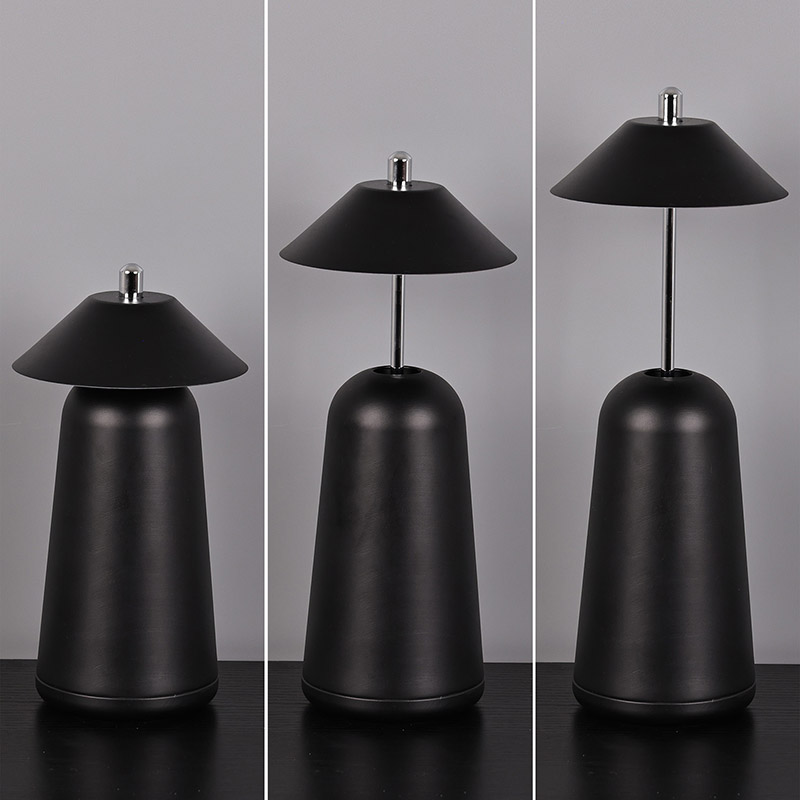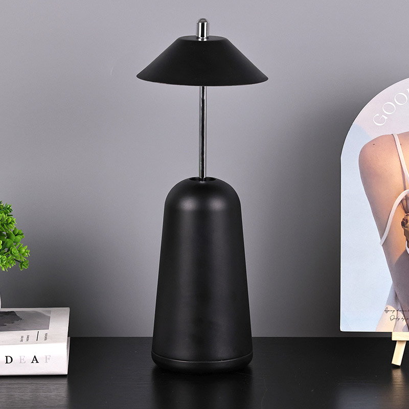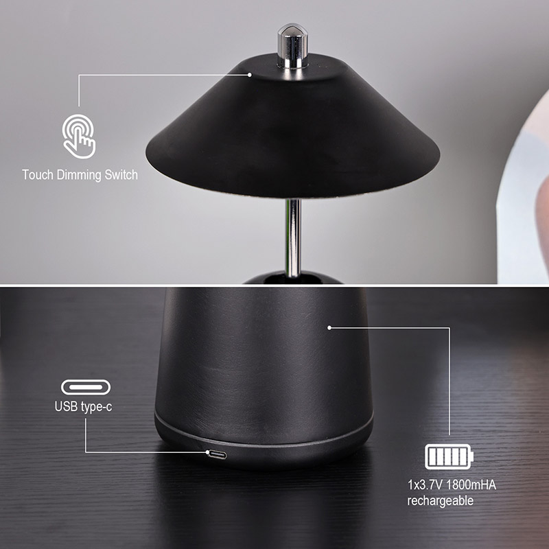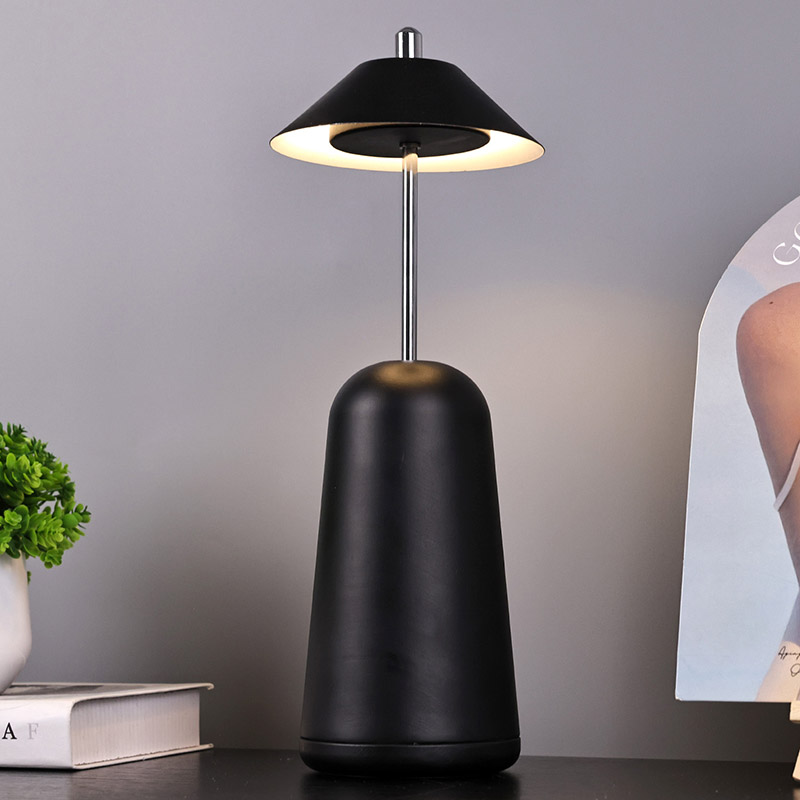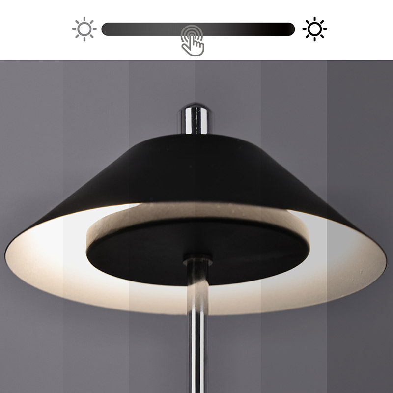 Ánh sáng của Đèn bàn Led hiện đại có thể điều chỉnh độ sáng cao được cắt vào chao đèn bên trong, với màu sắc ấm áp và ba mức cường độ ánh sáng từ 3000K đến 6500K. Phía trên chao đèn là công tắc cảm ứng, tương tự như ăng-ten. Đế được làm bằng kim loại hình trụ không đều