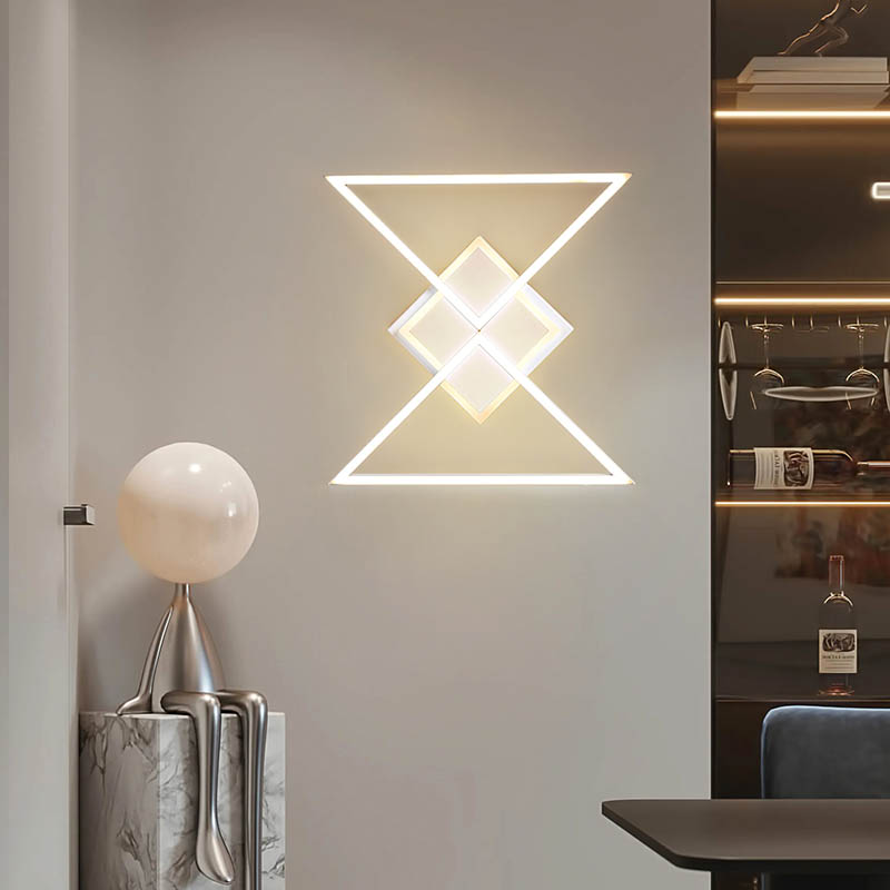 Thông số kỹ thuật:Chất liệu: Kim loại cao cấpThiết kế:Tam giác chéo hình học hiện đạiÁnh sáng:
