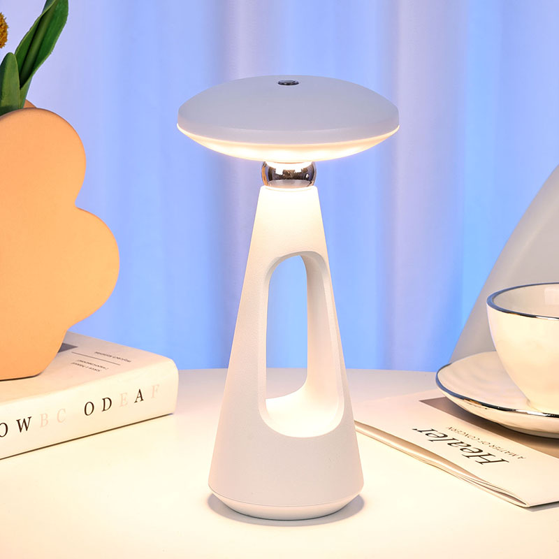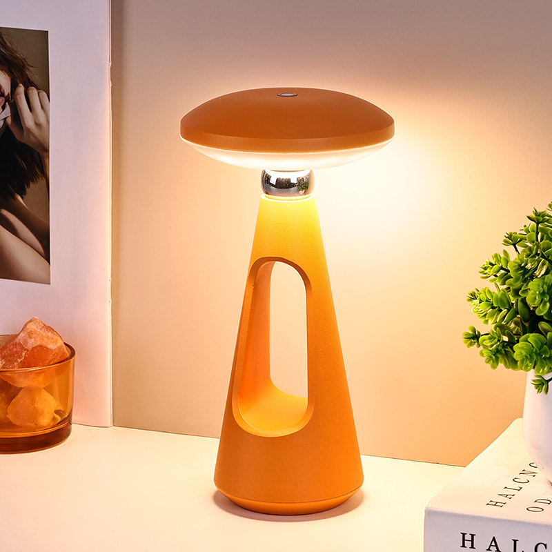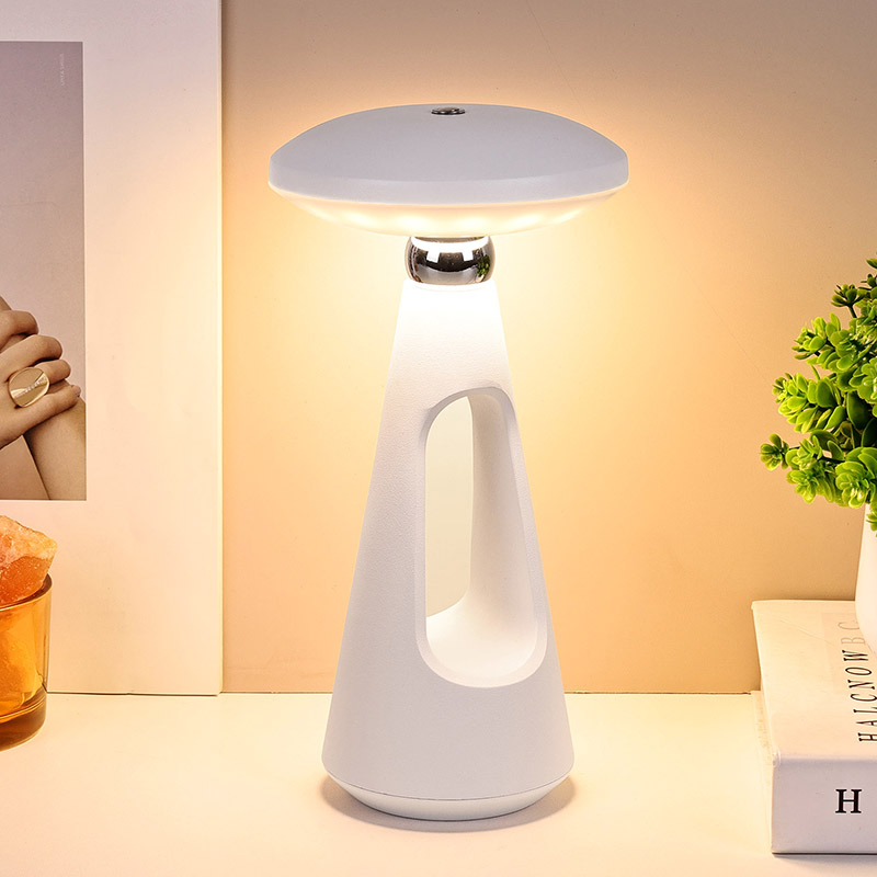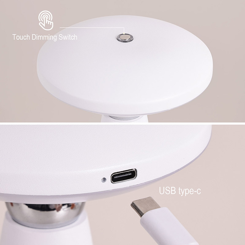 Chạm vào công tắc Làm mờĐèn bàn LED hình nấm có pin sạc với những đường nét đơn giản, mượt mà và hình dáng tiện dụng, thiết kế hình cây nấm và đuôi kim, cùng đèn bàn LED ánh sáng ấm áp bằng kim loại, không chỉ là một công cụ chiếu sáng thiết thực,