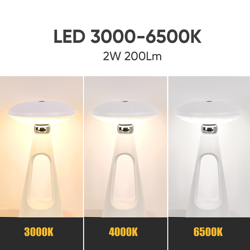 Đèn bàn LED hình nấm dùng pin sạc được trang bị nguồn sáng LED tiên tiến, phát ra ánh sáng ấm áp dịu nhẹ và có thể điều chỉnh cường độ ánh sáng. Làm mờ vô hạn có thể bảo vệ đôi mắt của bạn một cách hiệu quả. Bằng những thao tác đơn giản