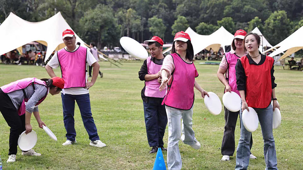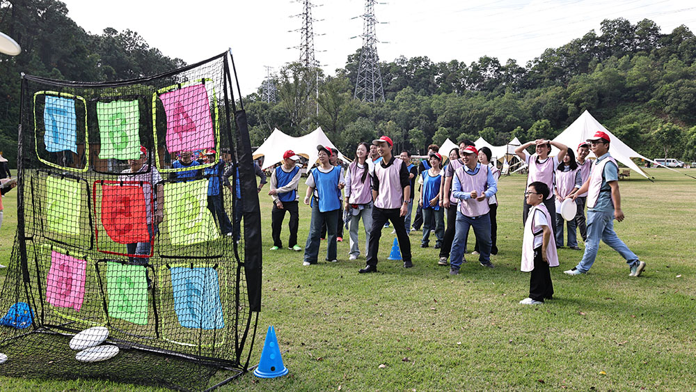 Dự án năm: Dĩa ném đĩa Chín Cung điện 🥏 Quy tắc: Ném đĩa bay từ khoảng cách 3 mét, bắn hạ Đĩa Chín Lưới và ghi được 3 cơ hội cho mỗi người. Tích lũy điểm cao để giành chiến thắng. Thời gian: 20 phút. Điểm nổi bật: Cạnh tranh chính xác và may mắn!