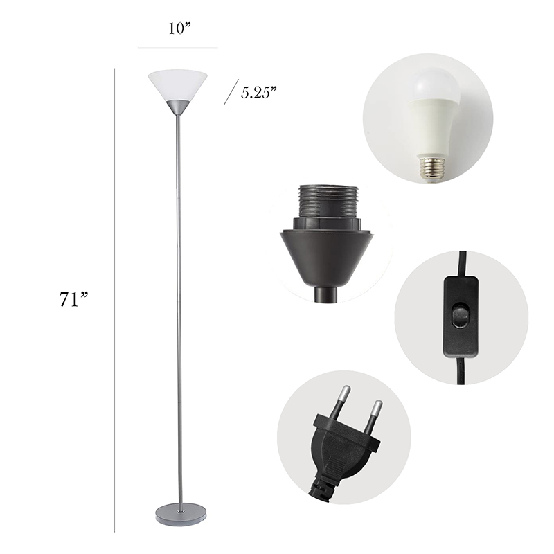 Đèn sàn có thể được trang bị bóng đèn E27/E26 và sản phẩm có thể vượt qua thử nghiệm tiêu chuẩn Châu Âu và Châu Mỹ