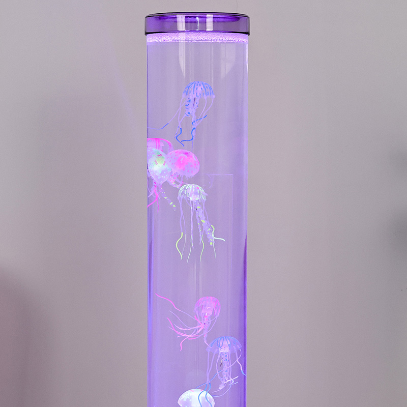 Bên trong thân đèn, nhiều mô hình sứa sinh học được sắp xếp tỉ mỉ. Dưới ánh sáng dịu nhẹ của đèn LED, chúng trôi đi chậm rãi và lắc lư một cách duyên dáng. Được kết hợp với hệ thống thay đổi màu sắc thông minh, ánh sáng có thể được điều chỉnh theo thời gian hoặc thủ công, hiển thị dải màu tím, xanh dương, xanh lá cây, hồng, vàng, v.v., tạo ra trải nghiệm hình ảnh đẹp như mơ. Nguồn sáng phía dưới được thiết kế độc đáo không chỉ cung cấp ánh sáng mà còn nâng cao cảm giác tổng thể về các lớp ánh sáng và bóng tối, làm cho đường nét của con sứa trở nên sống động và đẹp mắt hơn.