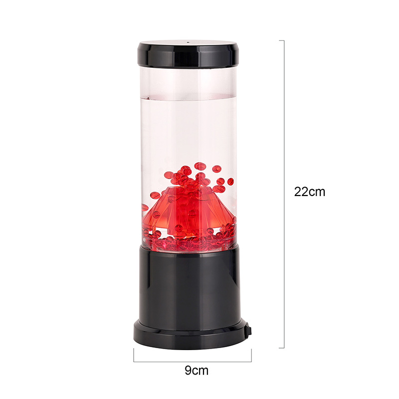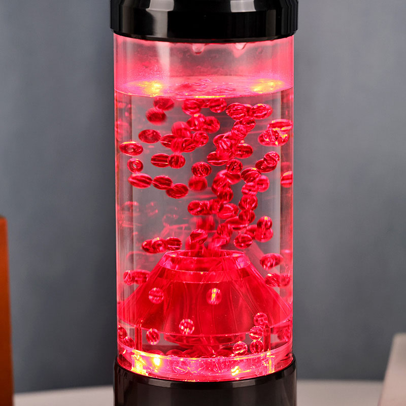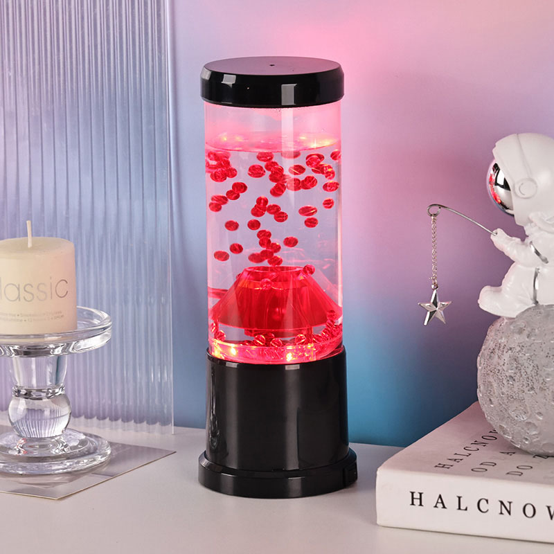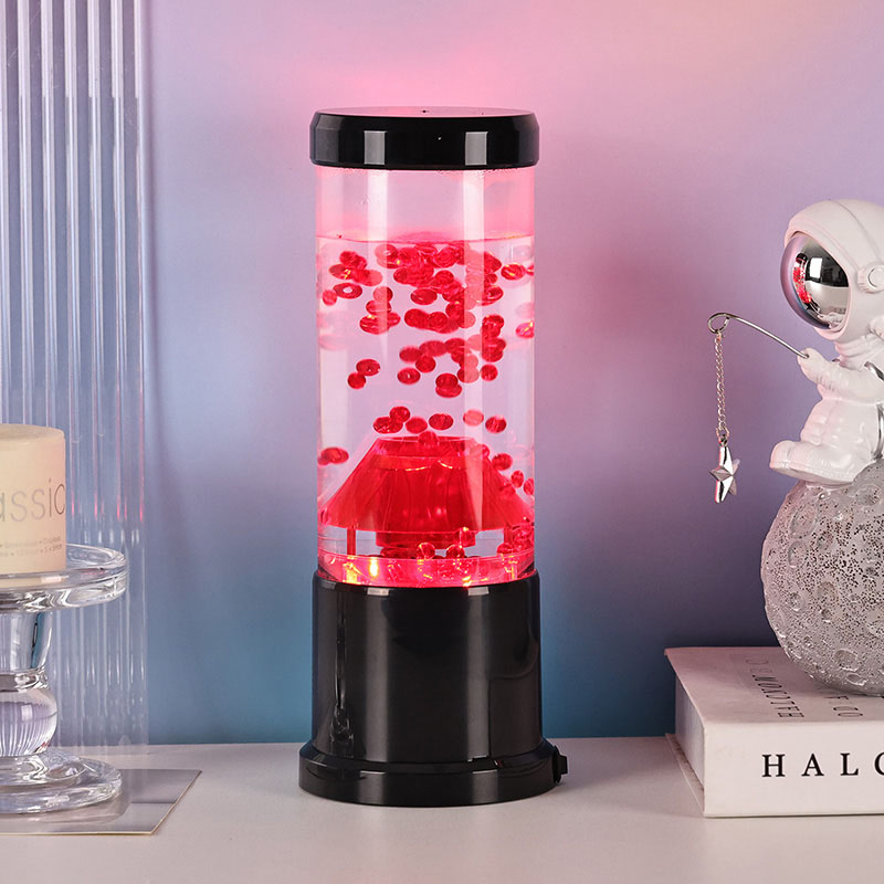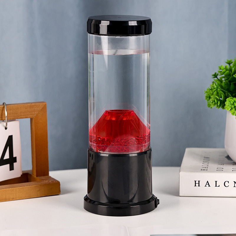 Phần trung tâm của đèn ngủ là một cột trong suốt giống như miệng núi lửa. Bên trong cột này, bạn sẽ thấy những quả cầu màu đỏ rực rỡ, gợi nhớ đến dung nham nóng chảy chảy trong lớp vỏ trái đất. Những quả cầu này trôi nổi một cách duyên dáng trong chất lỏng trong suốt, tạo ra hiệu ứng hình ảnh sống động và luôn thay đổi. Khi ánh sáng chiếu qua, nó tỏa ra ánh sáng ấm áp và lôi cuốn, hoàn hảo để tạo nên bầu không khí ấm cúng trong bất kỳ căn phòng nào.