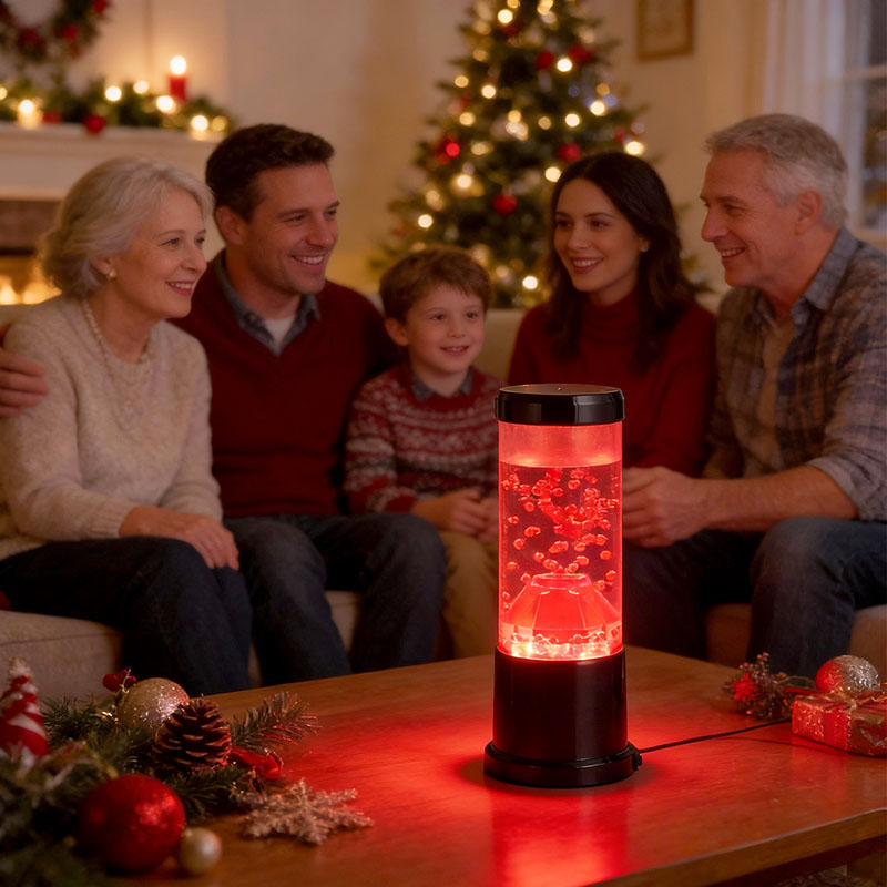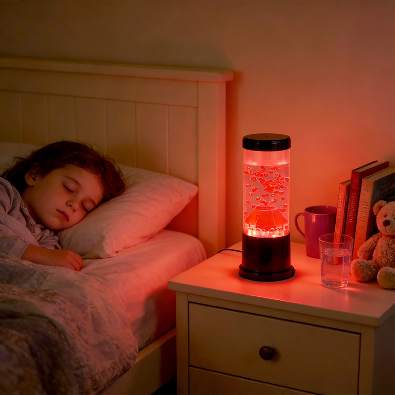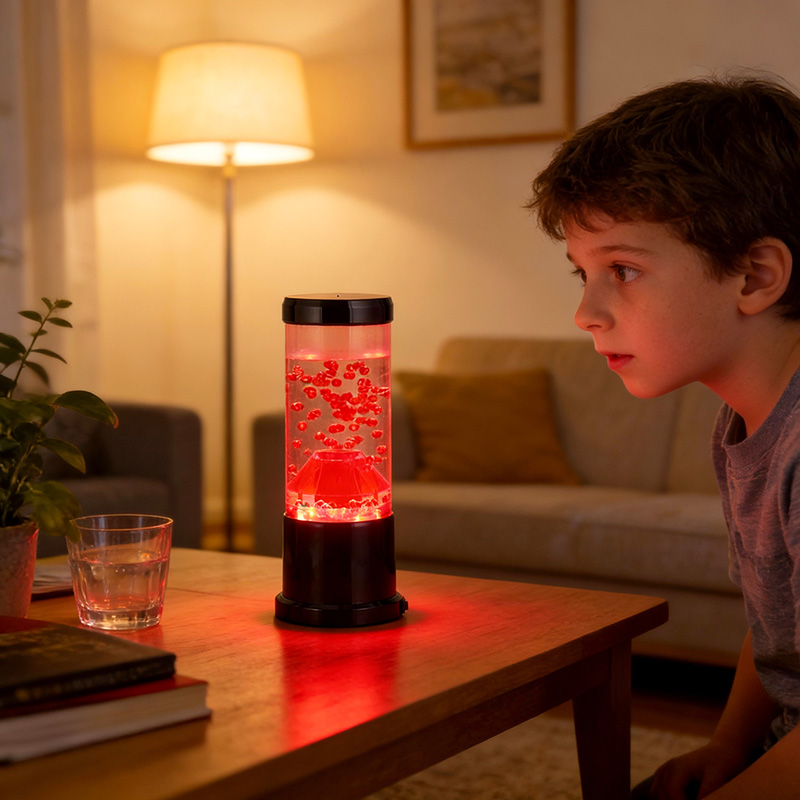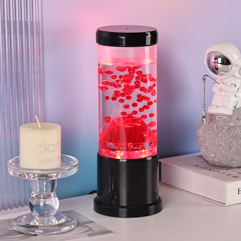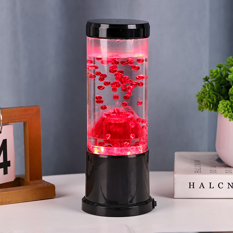 Phần trung tâm của đèn ngủ là một cột trong suốt giống như miệng núi lửa. Bên trong cột này, bạn sẽ thấy những quả cầu màu đỏ rực rỡ, gợi nhớ đến dung nham nóng chảy chảy trong lớp vỏ trái đất. Những quả cầu này trôi nổi một cách duyên dáng trong chất lỏng trong suốt, tạo ra hiệu ứng hình ảnh sống động và luôn thay đổi. Khi ánh sáng chiếu qua, nó tỏa ra ánh sáng ấm áp và lôi cuốn, hoàn hảo để tạo nên bầu không khí ấm cúng trong bất kỳ căn phòng nào.